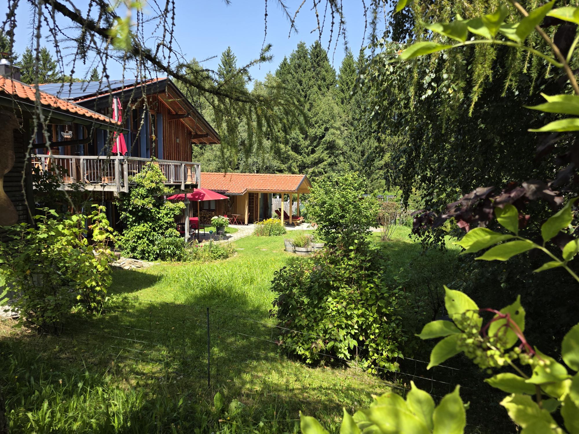 befindet sich die moderne Ferienwohnung (Baujahr 2013) mit 40 Quadratmeter für zwei (evtl. drei) Personen in einem idyllischen Holzhaus am Ortsrand von Saulgrub, mit großem Garten direkt am Rande eines Naturschutzgebietes, Sauna, Wellness und viel Komfort.